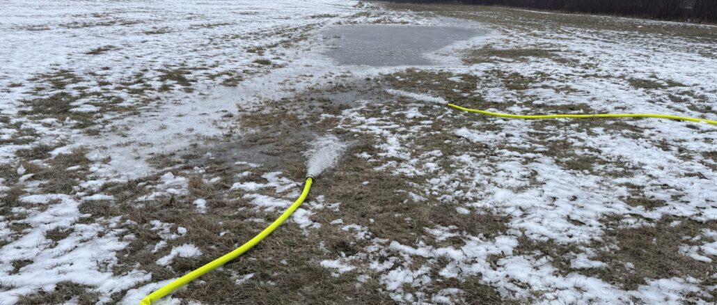 Während viele bei den aktuellen Minustemperaturen lieber die Heizung aufdrehen, zog es die Einsatzkräfte der Freiwilligen Feuerwehr Pielenhofen nach draußen – allerdings nicht zum Löschen, sondern zum „Fluten“. Dank des unermüdlichen Einsatzes der Ehrenamtlichen verwandelte sich die Wiese an der Badestelle in ein Paradies für Schlittschuhläufer und Eisstockschützen.